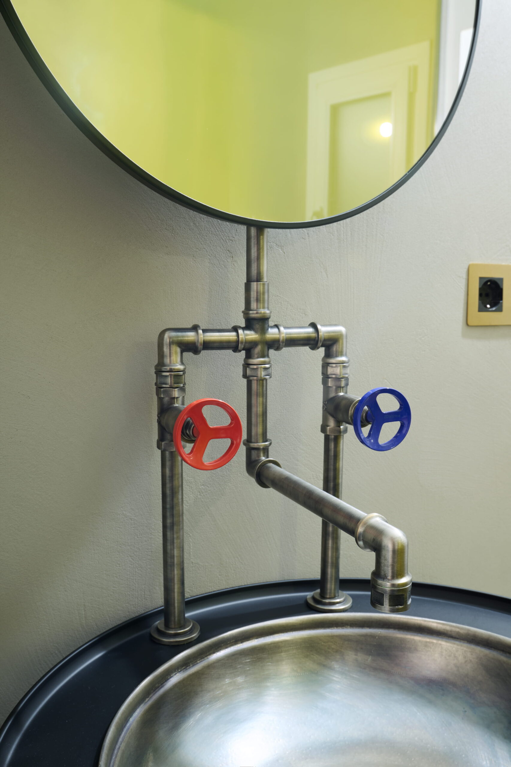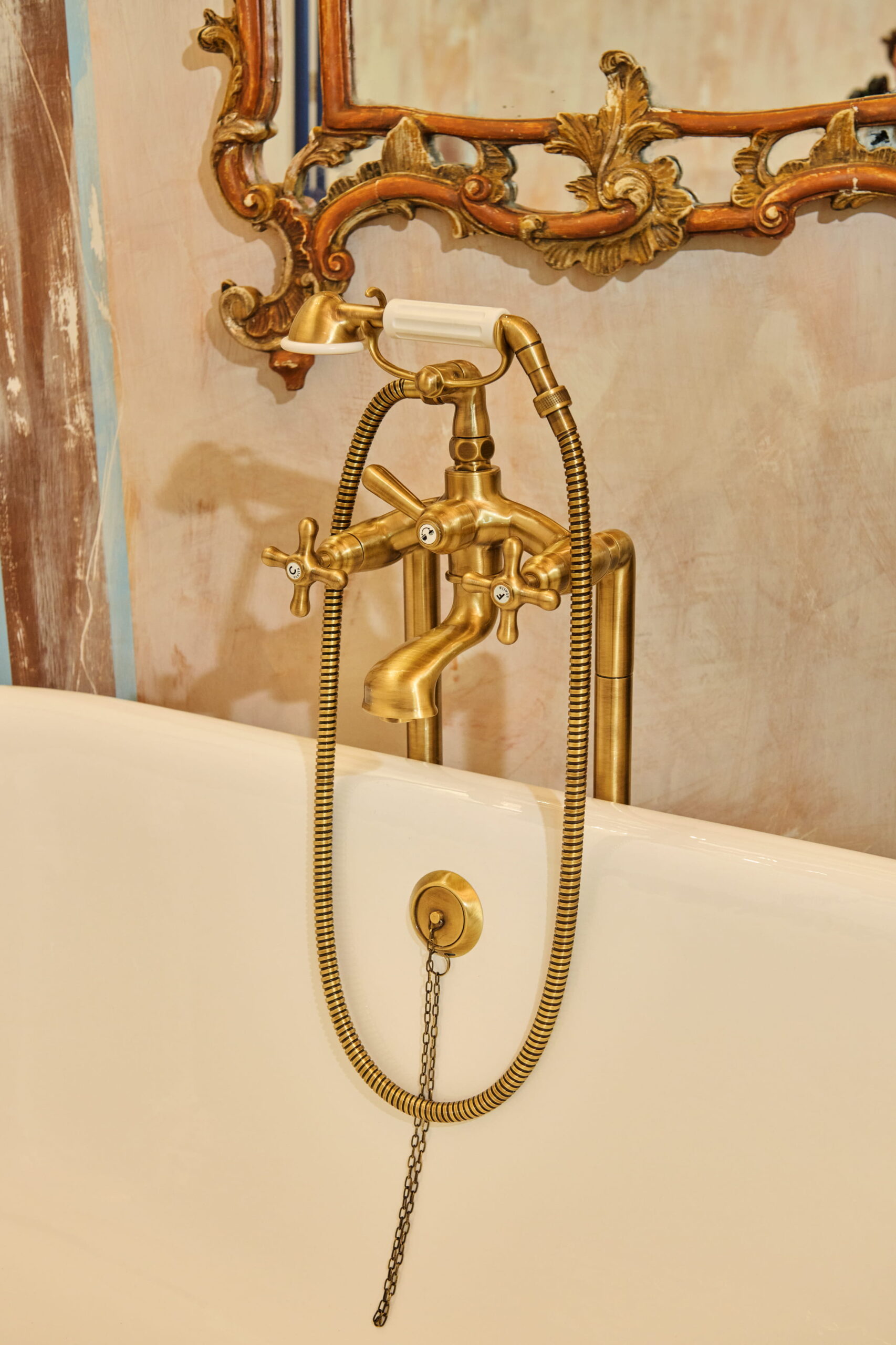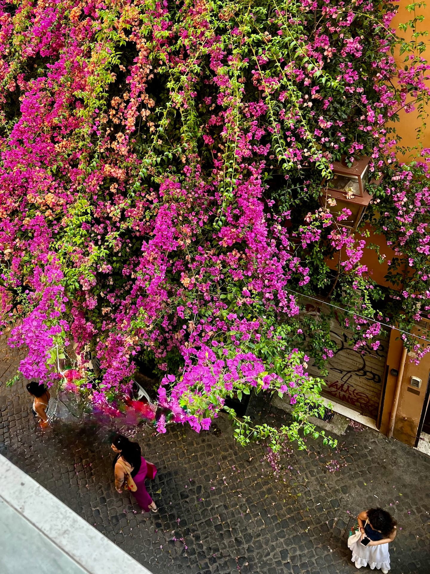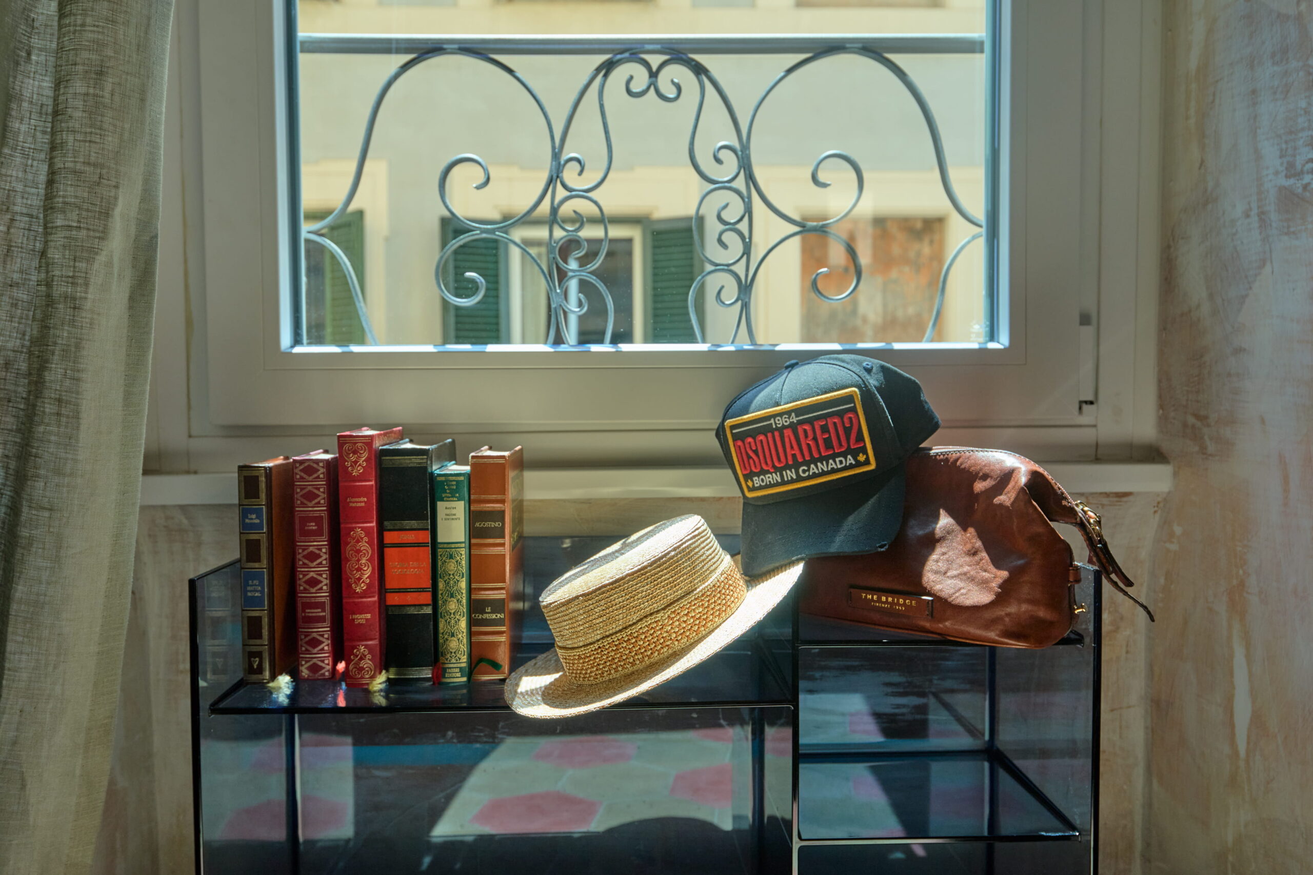 Underfoot, original cement tiles unfold in a muted, time-worn palette: soft greys, warm sand, dusty blues, and hints of terracotta. Their imperfect geometry and faded pigments tell a story of daily life layered over centuries, grounding the contemporary design in Roman authenticity.
